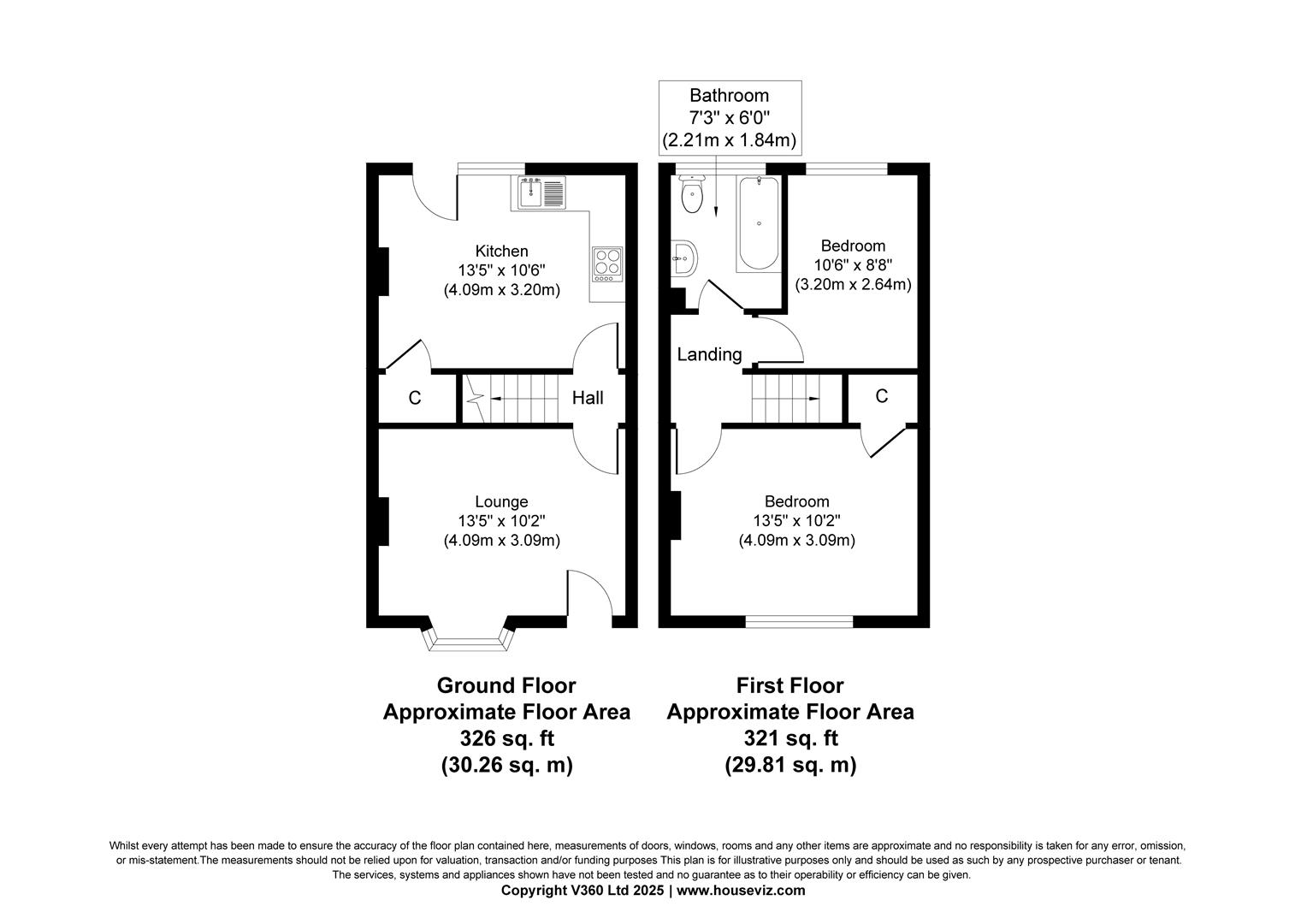 • Floor Area: Approx. 647 sq. ft (326 sq. ft first floor + 321 sq. ft second floor)