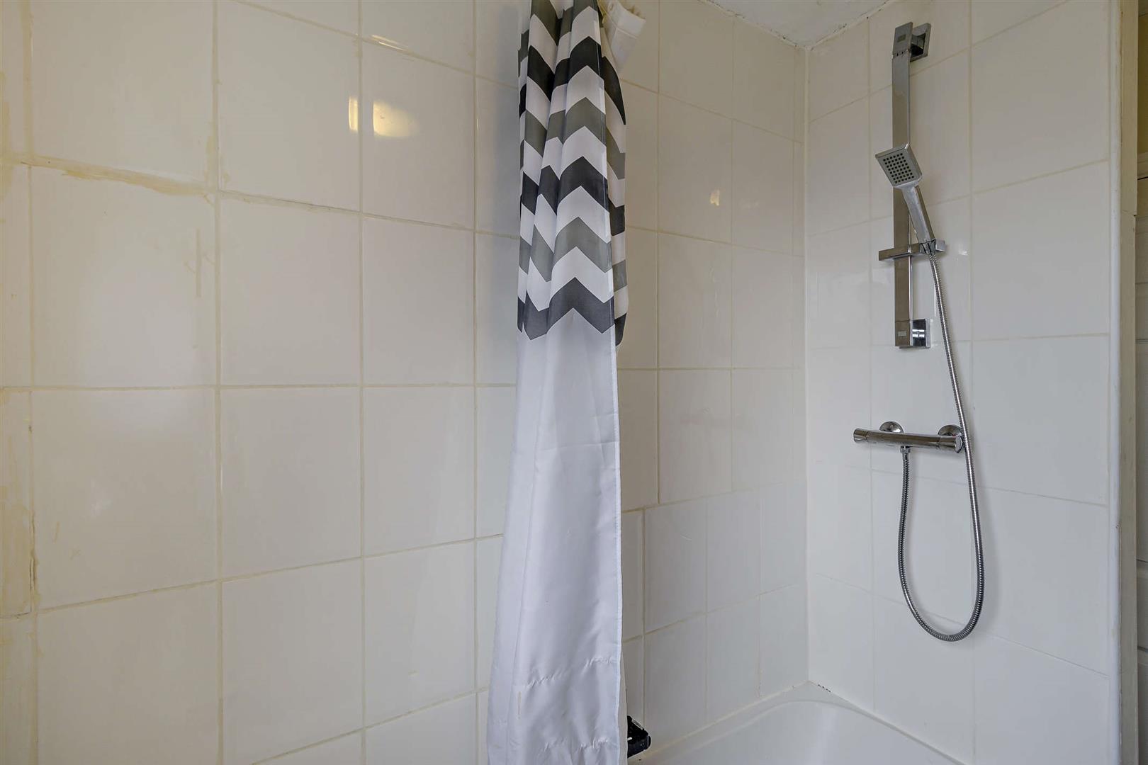 Upstairs, the property benefits from a generous main bedroom with built-in cupboard space, a second bedroom, and a family bathroom complete with a shower over bath.